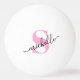 Pink and Black Personalised Monogram Name and Initial on Custom Table Tennis Ping Pong or Beer Pong Balls with an elegant calligraphy script and bold serif font in a modern and trendy design.