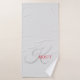 Beautiful monogram and personalized name combination on a high quality polyester and cotton bath towel. Ornate large gray initial with classic font full name in red on light gray background. Design positioned on lower 1/3 of towel for esthetic appeal. Perfect addition to your bathroom decor. Makes an ideal birthday, Mother's Day or housewarming gift.