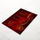 This beautiful wedding invitation in gold foil will give a sense of elegance to your wedding! The front right has a graceful swirl decoration adorned with a leaf. Your wedding text is at the left of the image. Everything is placed on a stunning deep burgundy red abstract background. The back of the invitation is the same red background, with your custom pale gold text in several fields. Easy to customise, and elegant for any season.