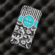 Monogrammed modern and trendy medium turquoise blue, black, and white stripes with damask Vibe™ iPhone 6 case.