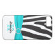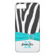 Personalised modern black and white zebra stripes animal pattern Barely There™ iPhone 7 case Vibe case with an aqua blue PRINTED ribbon and crystal brooch. Other colours are available upon request to niteowlstudio@gmail.com.