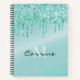 Monogram Aqua Blue Dripping Glitter Metallic Notebook