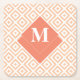 Monogram Art Deco Orange Geometric Greek Pattern Square Paper Coaster
