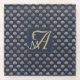 Monogram ART DECO Shells Navy Blue Gold Newlyweds Glass Coaster