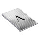 An elegant Art Deco geometric striped pattern in a silver / chrome satin gradient, with a slight, raised, 3-d effect and a customisable monogram in a Deco font