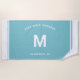 Personalised beach towel design for a girls' weekend vacation getaway features a custom first name in modern script writing framed by coastal stripes, with custom text for the occasion. The aqua blue background colour can be modified. Please visit our shop for other colour options.