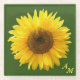 Monogram & beautiful sunflower on green forest glass coaster