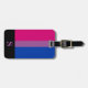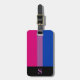 Luggage tag with the bisexual pride flag, pink monogram initial(s)/name on a black stripe monogram frame, name, and address information on a black background. Personalise with your monogram initial(s)/name, name, and address information using the easy templates. Font colour, font style, font size, and background colour are customisable. The perfect colours for travel.