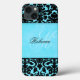 Monogrammed modern black and aqua blue damask pattern Case-Mate Barely There™ iPad Air case can be customised with your logo, name, initial, or other text. If you need assistance, email niteowlstudio@gmail.com.