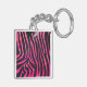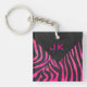 Monogram Black and Hot Pink Zebra Design Key Ring
