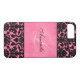 Monogrammed modern black and pink damask iPhone 7 case can be customised with your logo, name, initial, or other text. If you need assistance, email niteowlstudio@gmail.com.