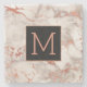 monogram black and rose gold marble stone coaster