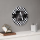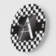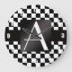 Monogram black and white checkers large clock