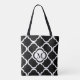 Monogram Black And White Quatrefoil Pattern Tote Bag