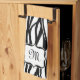 Add your monogrammed initial to this fun and fresh, hip abstract black and white zebra print kitchen towel. Funky pattern background is great for an accent on the wild side. This cool animal pattern is contemporary and modern and adds just a touch of flair and fashion to your home decor.