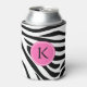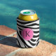 Monogram Black and White Zebra with Hot Pink Can Cooler