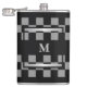 Masculine Black Checkered Personalized Monogrammed Hip Flask.