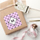 Add your own initial to this sticker with a simple small cross pattern in black on pink. Click Customise It to change fonts, background colour, add text and more, even save your design for later.
