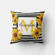 Monogram Black Eyed Susan Yellow Black Stripe Cushion