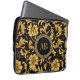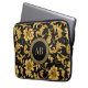 Monogram Black Gold Classy Elegant Pattern Laptop Sleeve