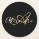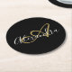 Monogram Black Gold Elegant Script Name Round Paper Coaster