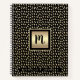 A faux gold foil square with a black script monogram initial and custom name, overlaying a luxury gold oblong dots pattern on black, highlight this chic, girly, modern monogramed spiral journal notebook. 8 different inside paper designs to choose from. Makes a stylish statement every time you use it. A great gift for a friend, as well as yourself!