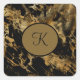 Monogram Black Gold Marble Agate Trendy Modern Square Sticker
