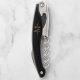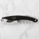 This modern minimal personalised corkscrew has a gold monogram split initial with name inside on a black background.