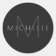 Monogram Black Grey White Modern Stylish Name Classic Round Sticker