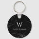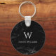 Monogram Black Marble Modern White Initial Name Key Ring