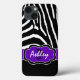 Monogrammed modern black, white and purple zebra print striped pattern Case-Mate Barely There™ iPad Air case can be customised with your logo, name, initials, or other text. If you need assistance, email niteowlstudio@gmail.com.