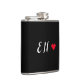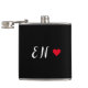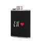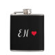 Monogram Black Red Heart Handwritten Script Hip Flask