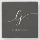 Monogram Black Simple Elegant Feminine Stone Coaster
