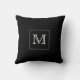 Monogram throw pillow has monogram framed in square thin white border. Change sample initial to your own