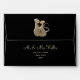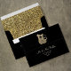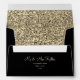 Chic, elegant, modern black wedding invitations 5x7 envelope with return address, glitter gold inside and monogram - initial at the top flap.