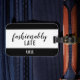 Dress up your luggage with this clever luggage tag! The Monogram Blue Fashionably Late Bag Tag design features a modern black & white sans serif and script fonts. Personalise this stylish luggage tag with your initials! Enjoy!