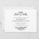Black and white hand-drawn leaf monogram with heart wedding live video streaming announcement card. This simple yet stylish card is part of the matching white and black hand-drawn leaf monogram wedding set. Ideal to use as a wedding information card to inform your guests of a wedding streaming event due to unforeseen circumstances. Leaf design circling your own monogram initials and words design. Other colour options and matching products are available. Original drawing and design by Sarah Trett www.sarahtrett.com for www.mylittleedenweddings.com