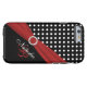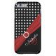 Monogrammed modern black and white polka dots pattern Vibe™ iPhone 6 case with red PRINTED ribbon and a PRINTED diamond jewel brooch. ****PLEASE NOTE that everything will as it appears on your monitor. No one will edit it for mis-alignment, typos, etc. it to add your name, initial, or other text. If you need assistance, email niteowlstudio@gmail.com.