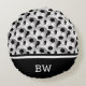 Add your monogram initials to this eye-catching and stylish football soccer ball design featuring a pattern of black and white soccer balls with accents in coordinating black and white. Ideal for any soccer player, football coach or soccer fan whose team colours are black and white.