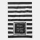 Monogram Black White Stripe Personalised Tea Towel