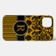 Monogrammed modern black and golden yellow damask with stripes pattern Case-Mate Barely There™ iPad Air case can be customised with your logo, name, initials, monogram, or other text. If you need assistance, email niteowlstudio@gmail.com.