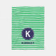 Nautical Kelly Green and white colour striped pattern with accent Navy Blue circle with custom monogram and name for cosy fleece blankets - chose your size of blanket. Personalise your gift by adding your own name, monogram or initial. This modern classic trendy coastal beach design will enhance any home decor, beach house, living room, sofa, bedroom, office, boat, university or college dorm room, nursery, teenagers, boys and girls, kids or baby bedroom. Choose your own font and colours to make it your own. For more colours go to www.zazzle.com/D_Zone_Designs
