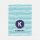 Nautical Teal and white colour striped pattern with accent Navy Blue circle with custom monogram and name for cosy fleece blankets - chose your size of blanket. Personalise your gift by adding your own name, monogram or initial. This modern classic trendy coastal beach design will enhance any home decor, beach house, living room, sofa, bedroom, office, boat, university or college dorm room, nursery, teenagers, boys and girls, or baby bedroom. Choose your own font and colours to make it your own. For more colours go to www.zazzle.com/D_Zone_Designs