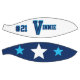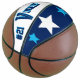 This is a full size basketball with two panels designed with a monogram name (large first letter) and uniform number, in popular college colours. This one is shown in Navy Blue, Light Blue, and White. The second panel has team colours with three stars. All text, art, and colours can be removed, or changed as desired. One panel can be left white for autographs, etc.