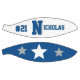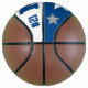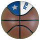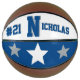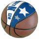 This is a full size basketball with two panels designed with a monogram name (large first letter) and uniform number, in popular college colours. This one is shown in blue, white, and grey. The second panel has team colours with three stars. All text, art, and colours can be removed, or changed as desired. One panel can be left white for autographs, etc.