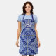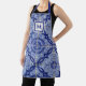 Cook in style and brighten your day with this elegant blue and white all-over print apron, featuring a traditional Mediterranean ceramic tile pattern. In the spirit of the finest Portuguese, Spanish and Moroccan vintage tiles, this apron's' motif is a pleasing, intricate array of geometric lines and swirls. Personalise with a monogram initial for an extra special touch. Straps are a matching blue. A perfect gift for the stylish chef or home cook in your life...or for yourself!