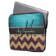 Monogram Blue Chevron Zigzag Burlap Jute Laptop Sleeve