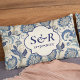 Pillowcases featuring a vintage monogram blue and cream damask floral design and the initials and wedding date of the bride and groom.