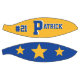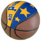 This is a full size basketball with two panels designed with a monogram name (large first letter) and uniform number, in popular college colours. This one is shown in blue and gold. The second panel has team colours with three stars. All text, art, and colours can be removed, or changed as desired. One panel can be left white for autographs, etc.