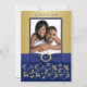 Monogram Blue, Gold Floral Photo Wedding Invite